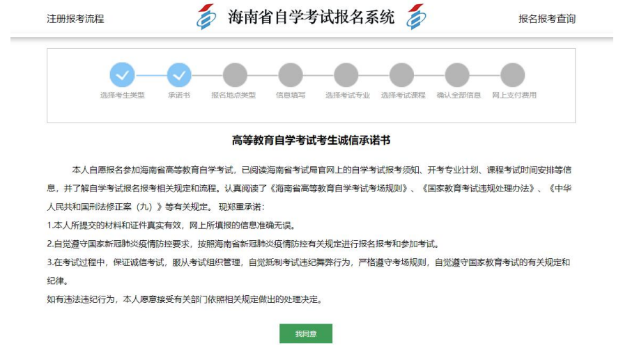 2、阅读《考生诚信承诺书》点击【我同意】进行下一步