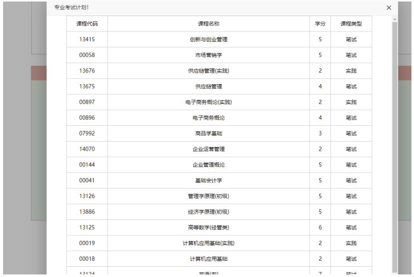 选择报考专业后,弹框显示专业的考试计划,查看过后关闭即可