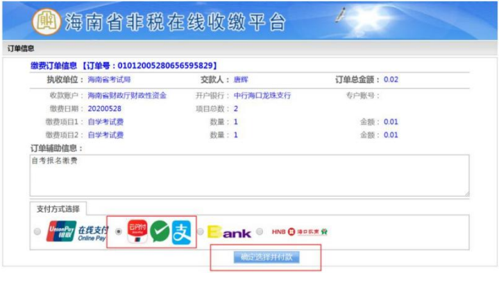 8、进行网上支付,支持银联卡在线支付、微信/支付宝支付等