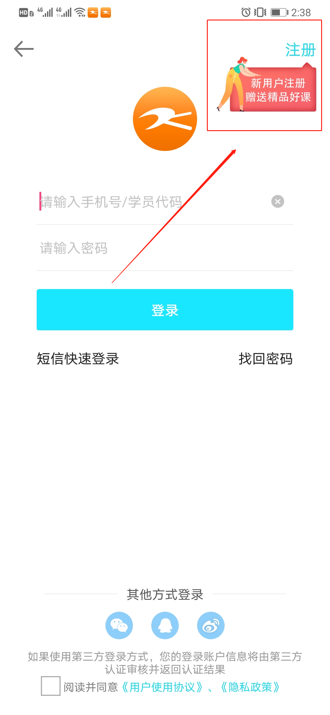 2在登录界面右上角可以看到“注册”入口。
