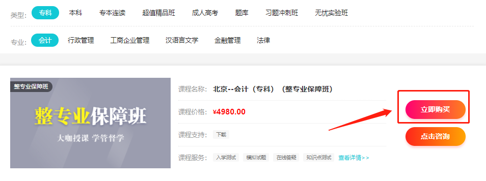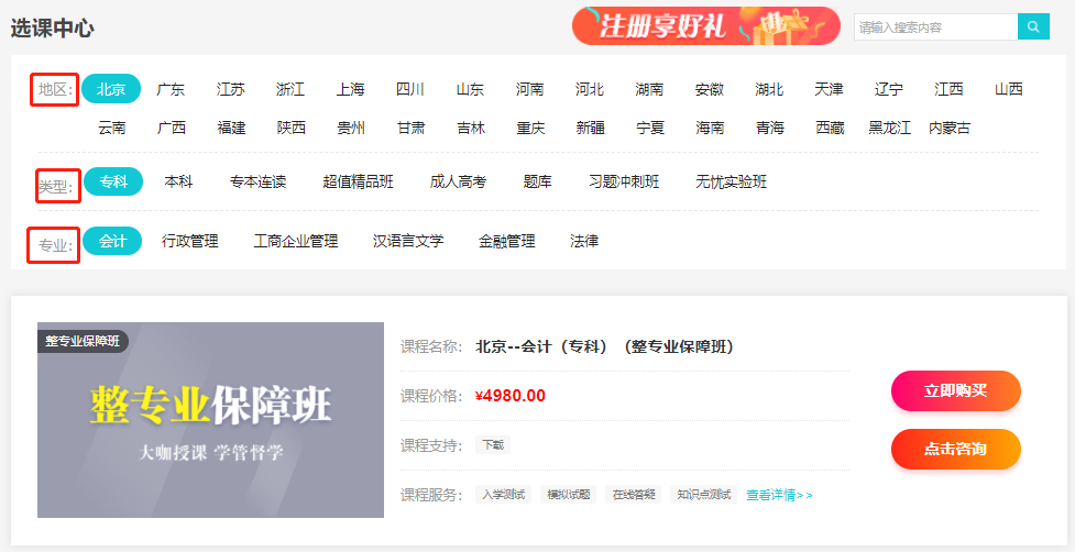 1进入自考365网校选课中心,选择辅导类别;