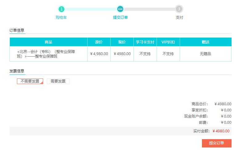 5填写/核对订单信息,提交订单;