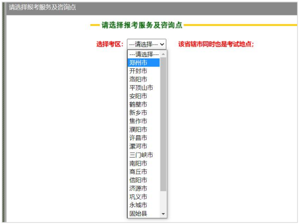 4.根据自身情况选择自考考生服务大厅(考试地区),如图所示。