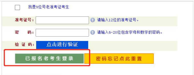 1.审核不通过的考生,请重新登录河南省高等教育自学考试考生服务平台(zkwb.haeea.cn),填写准考证号、密码、验证码,点击“已报名老考生登录”。