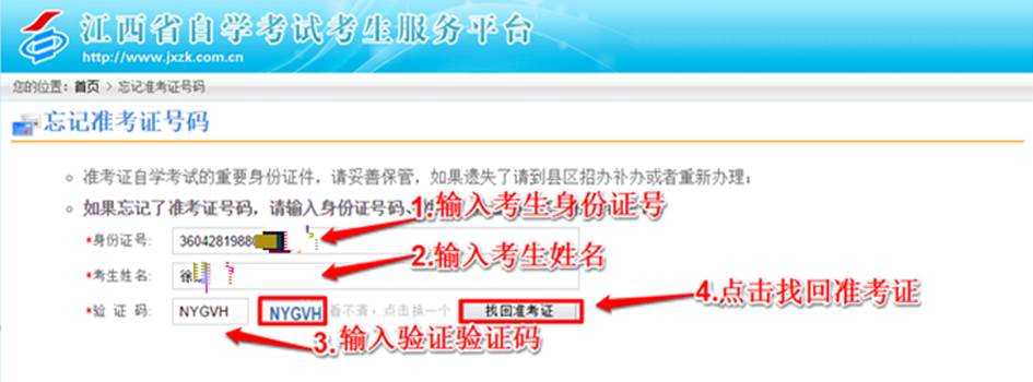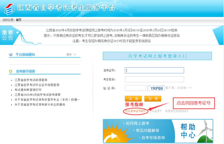 4、进入网上报名登录入口,按要求输入信息登录网上报名系统,如下图。如果忘记准考证号,按下图所示进行找回: