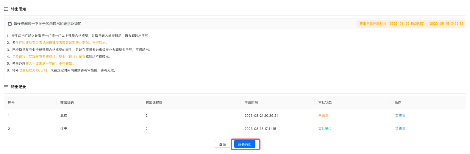 若还需要继续转出别的课程,可以待当前申请审核完成后点击“我要转出”,再次进行申请。