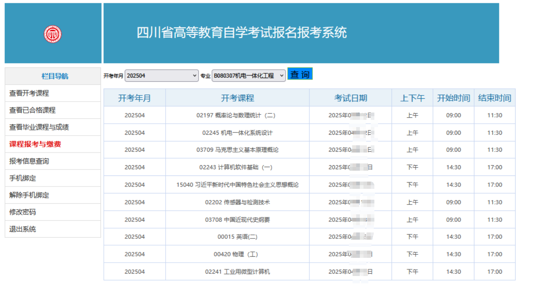 (三)查看开考信息与合格课程